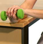- Support your forearm on a table with your palm facing down. Hold a weight.