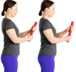 - Slowly bring one arm up to touch your shoulder. Keep your arm straight. Only move your forearm.