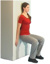 Stand leaning with your back against a wall and your feet about 20 cm from the wall.