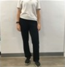 Stand tall with your feet wide apart. Trunk is active and buttocks tightened.