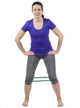 Stand tall, with an exercise or loop band around your legs (slightly above or under the knee joint).