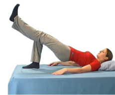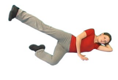 Lying on your side, keep the leg on the bed bent and the upper leg straight.