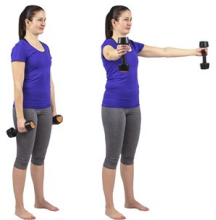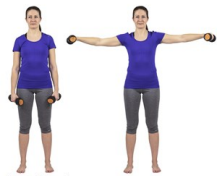 Lift your arms to the side, keeping elbows straight. Palms face downwards or forwards.