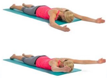 Lie on your stomach on your bed with your arms straight by your sides, holding a small weight in both hands is optional if it is initially too easy.
