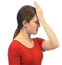 Sit or stand and place your hand on the front of the opposite shoulder.