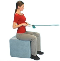 Sit or stand holding on to an exercise band with both hands.