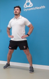 2. Take one foot out to the side, leading with the ankle. Transfer your weight onto this leg and allow the other leg to come towards it. Continue to side-step in one direction, before repeating in the opposite direction.