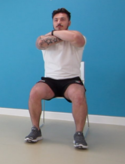 2. Lean forwards and stand up from the chair, keeping your knees hip-width apart and keeping your arms folded, if possible. Slowly return to sitting again.