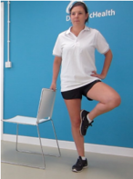 3. Alternatively, you can stand behind the chair and use this to hold as you do a mini-squat. You can progress by stepping away from the chair and doing a full squat.